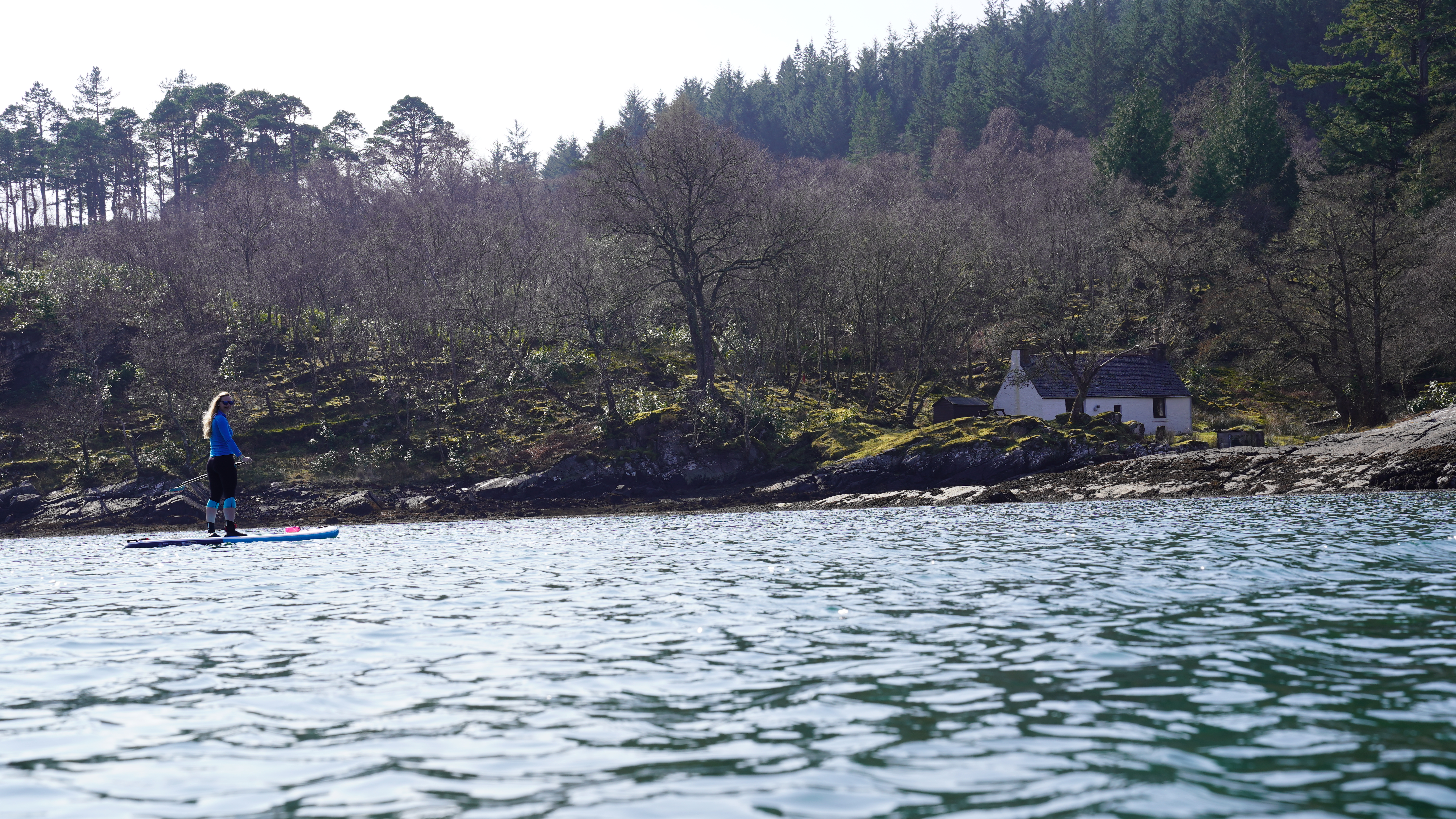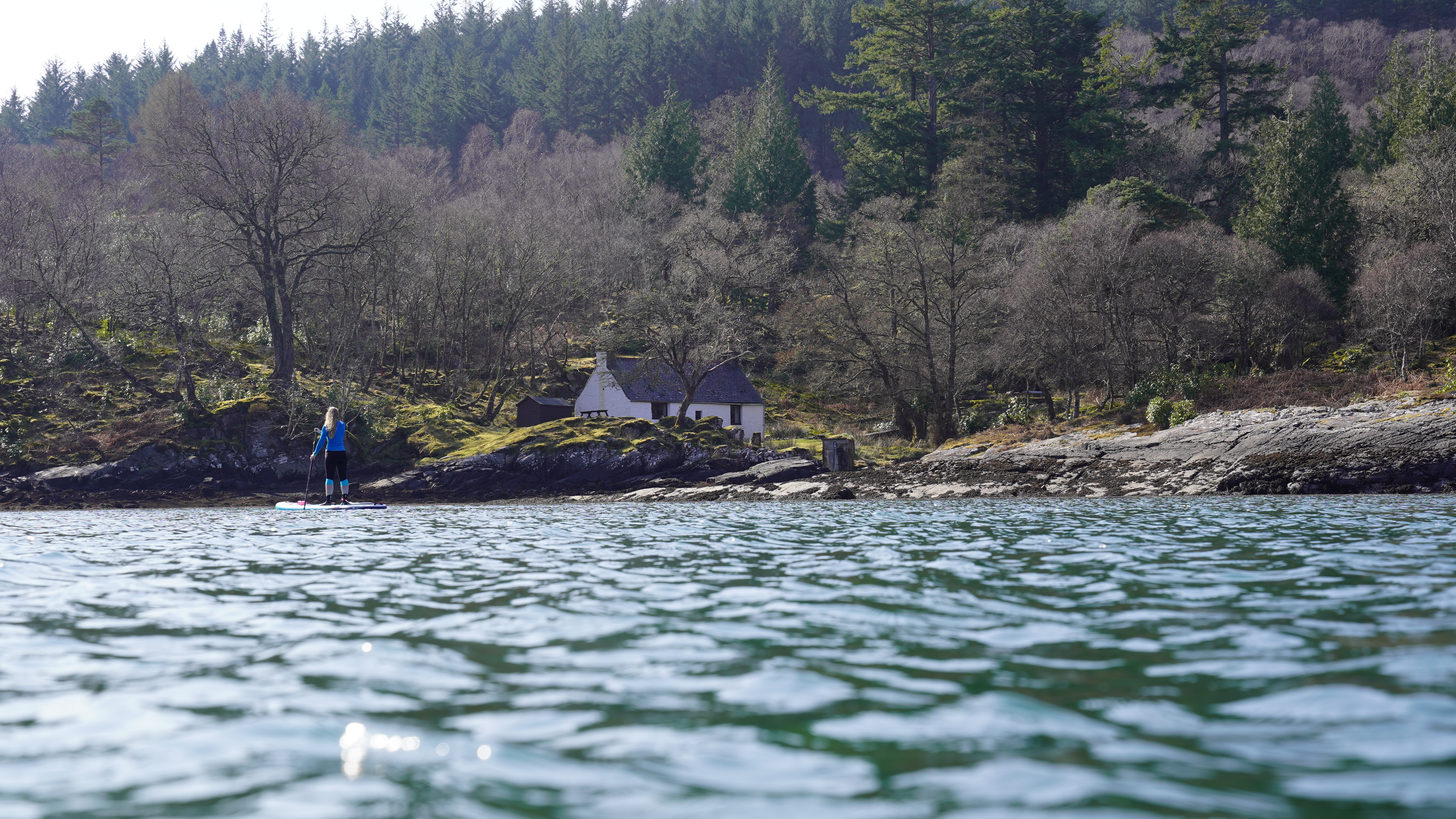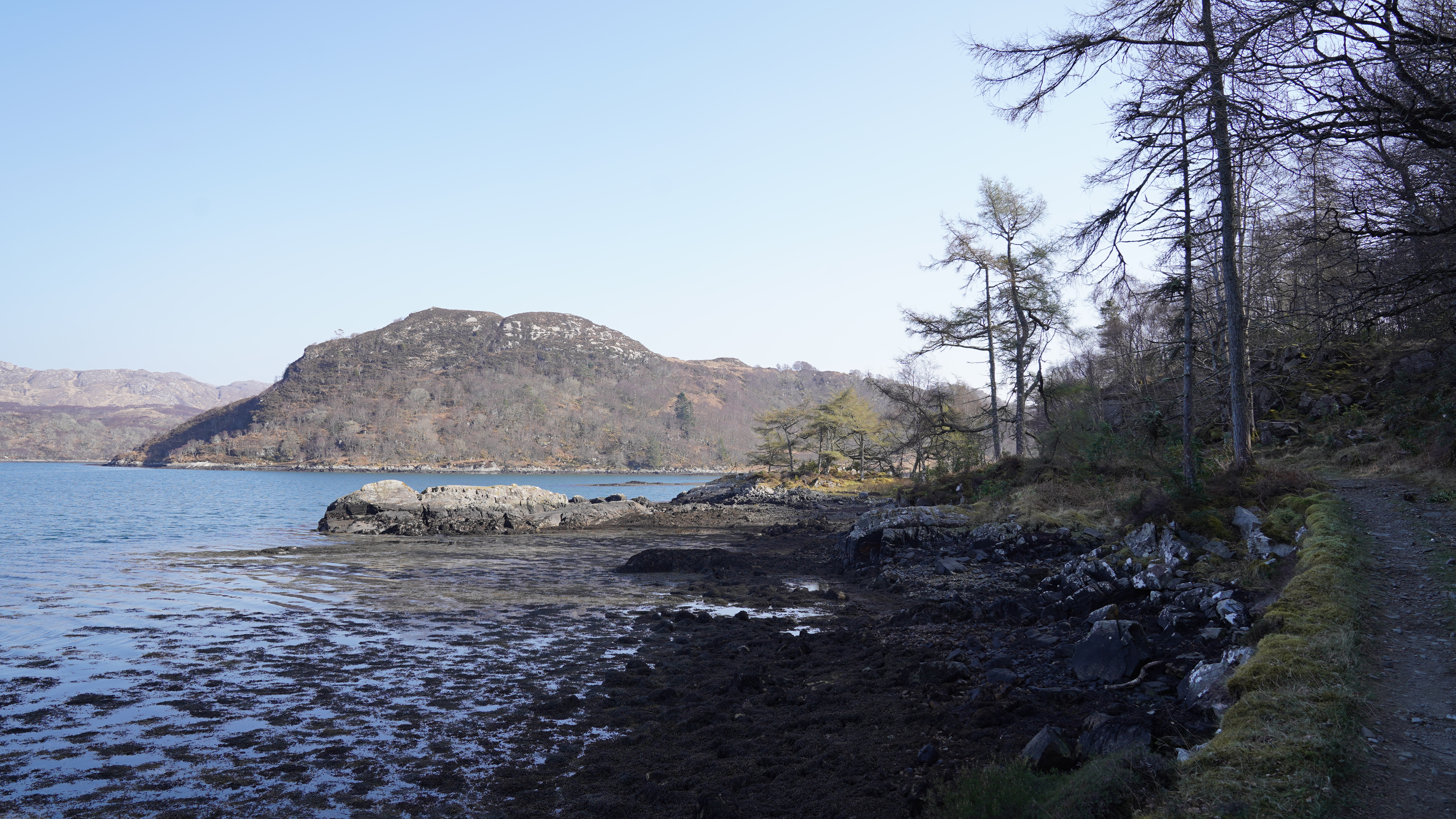 We stashed the SUPs, grabbed a bag and set out along the North Shore path. With some stops to take photos & remove some rhododendrons (see the Eilean Shona conservation page), it took us 45 minutes to get to Baramore.