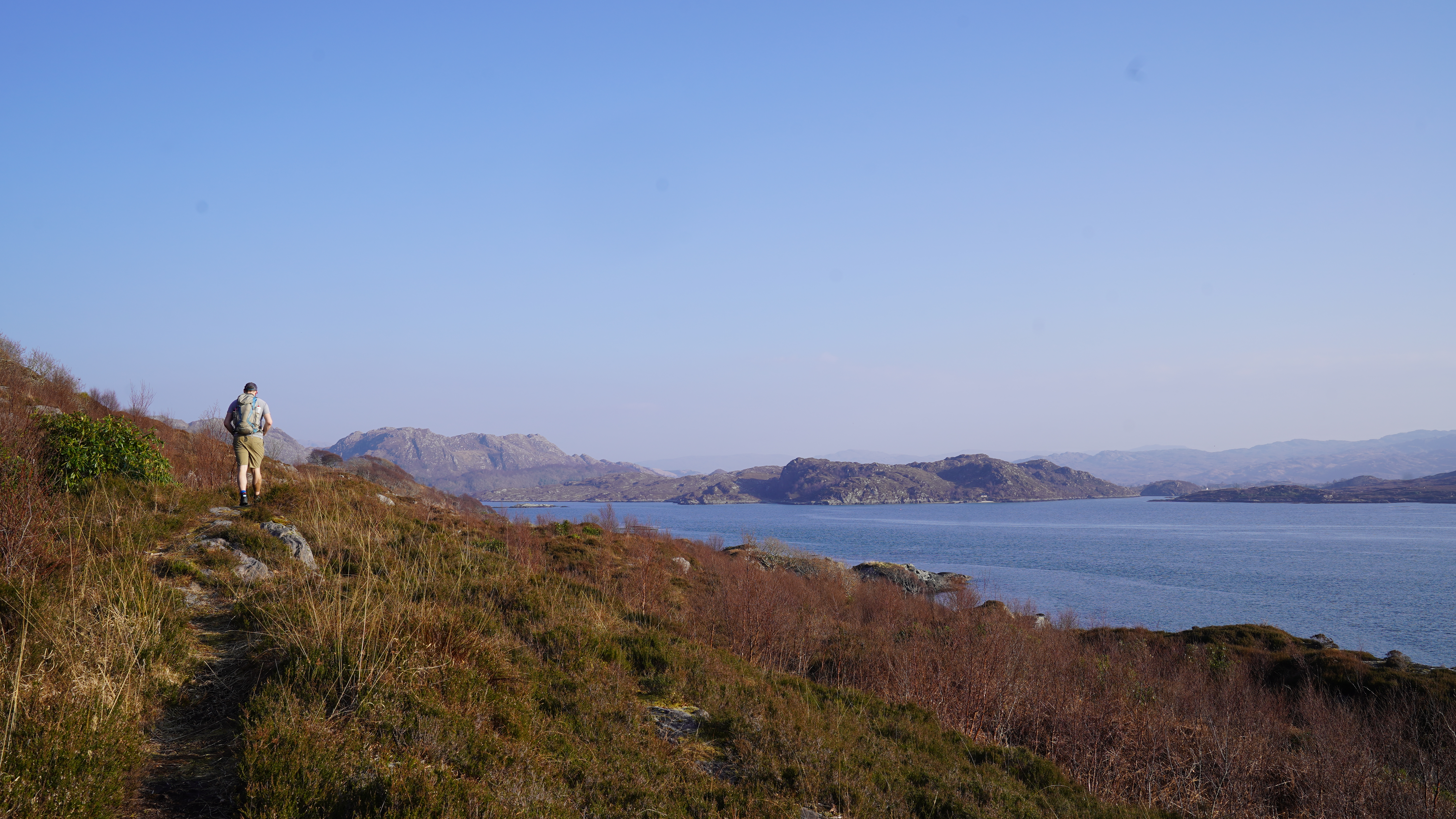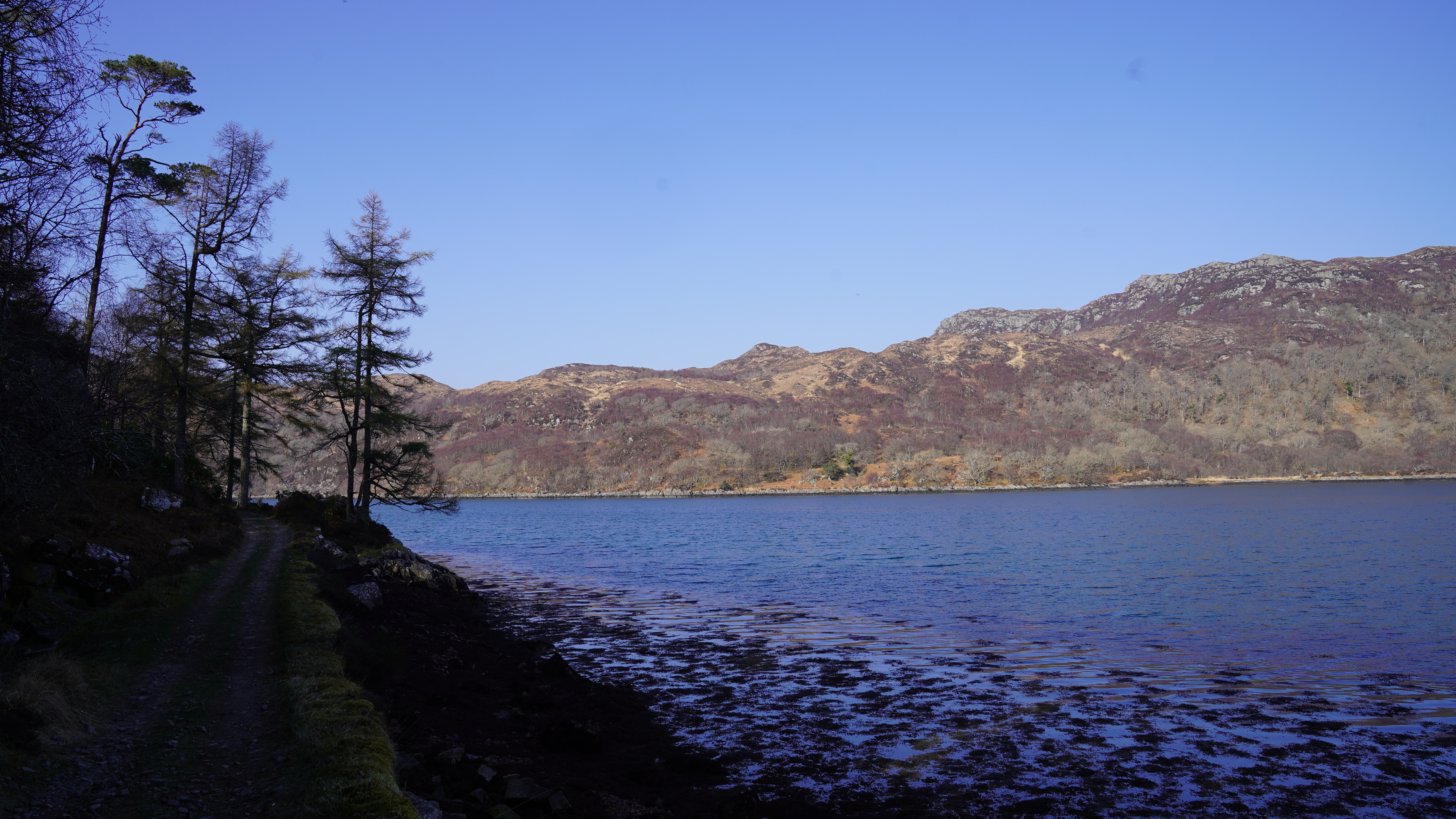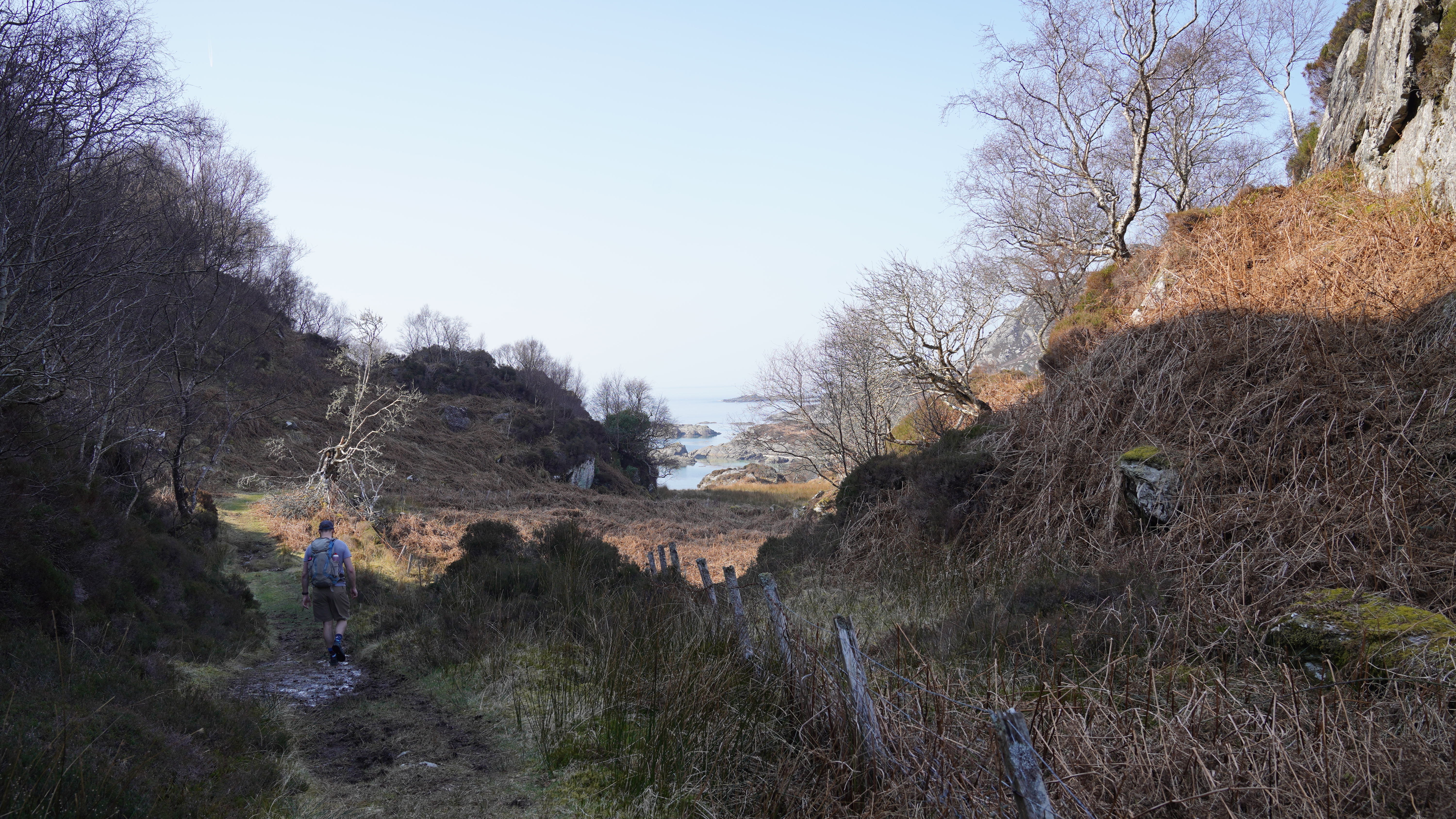 We stashed the SUPs, grabbed a bag and set out along the North Shore path. With some stops to take photos & remove some rhododendrons (see the Eilean Shona conservation page), it took us 45 minutes to get to Baramore.