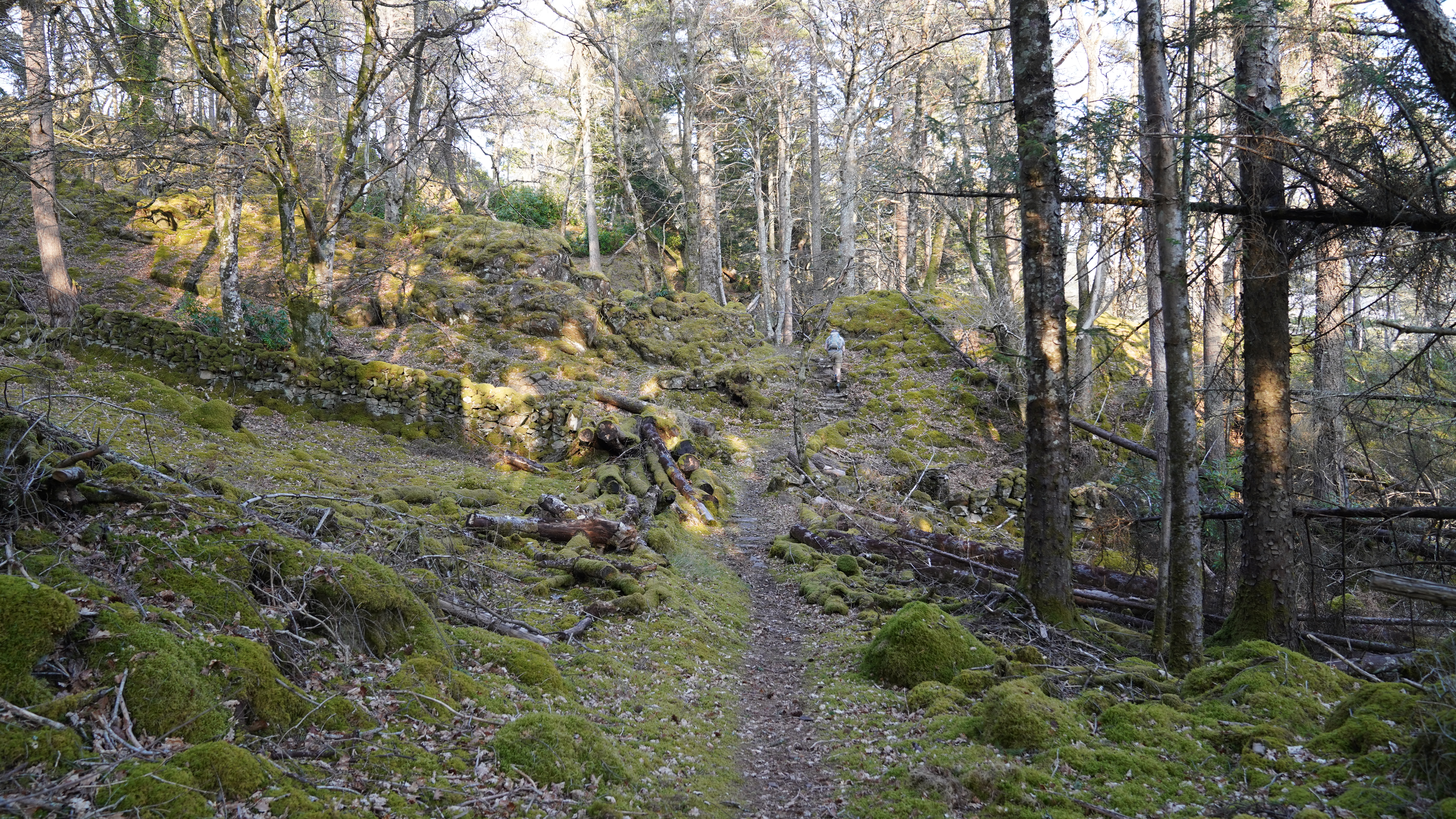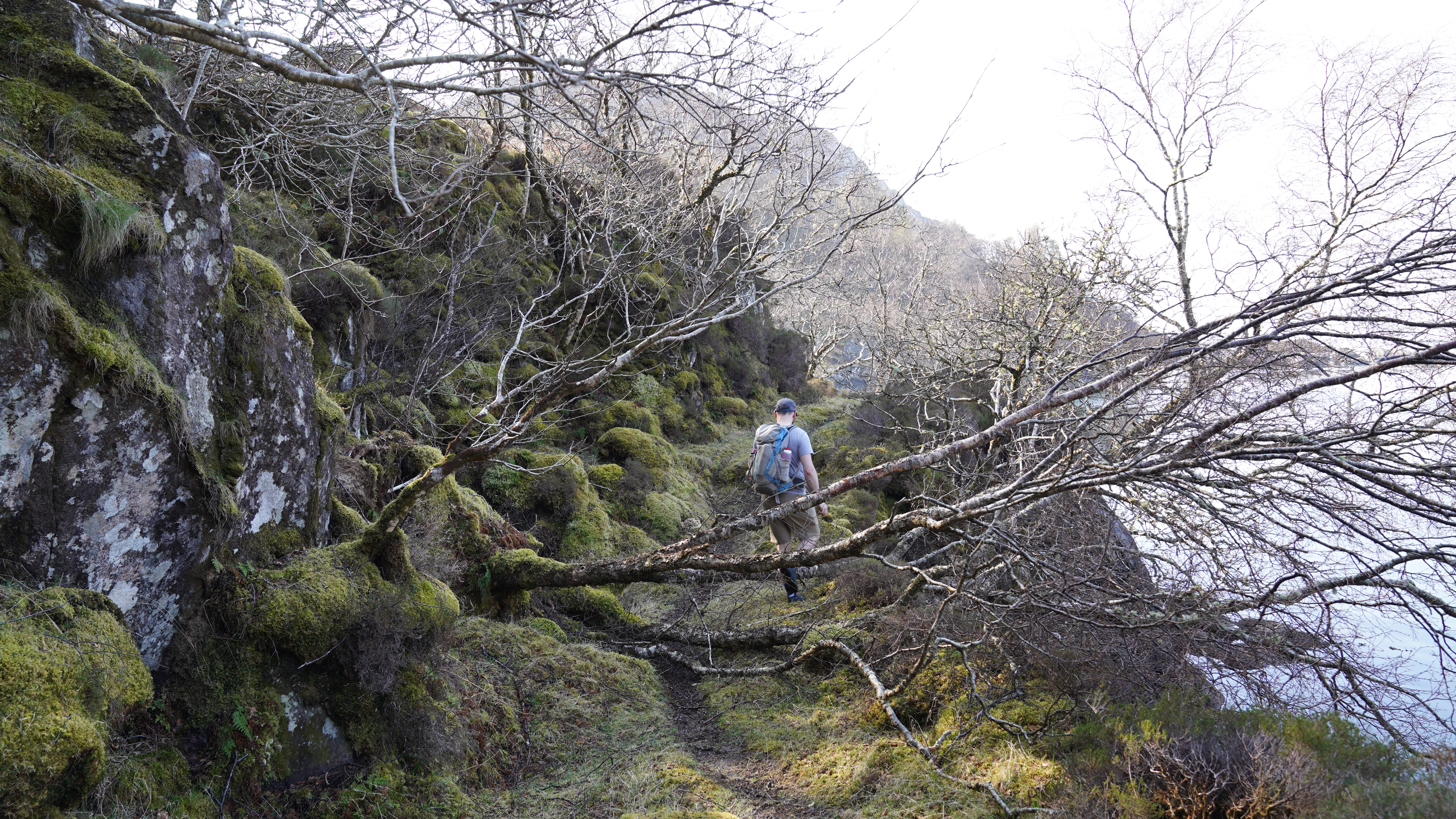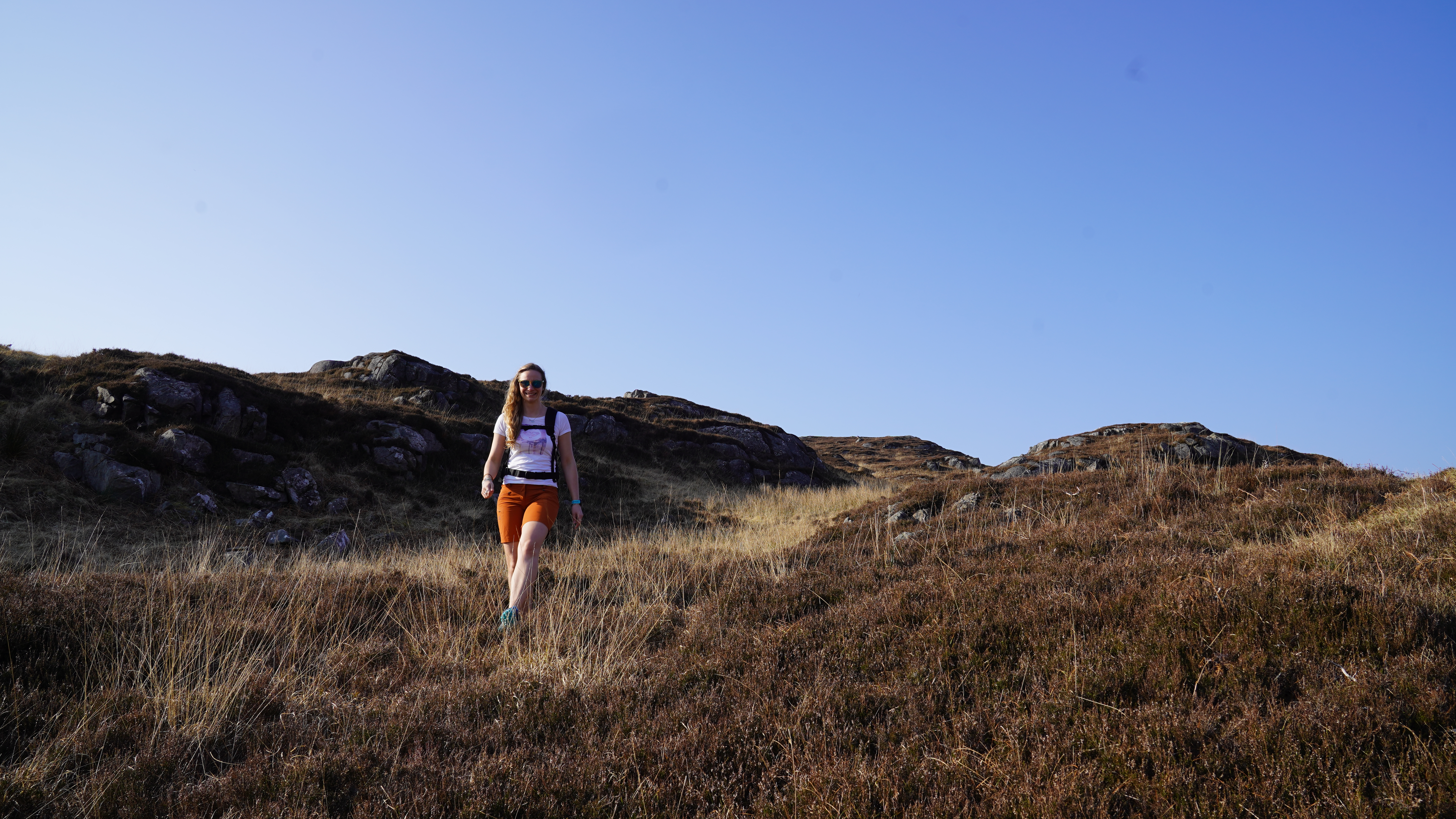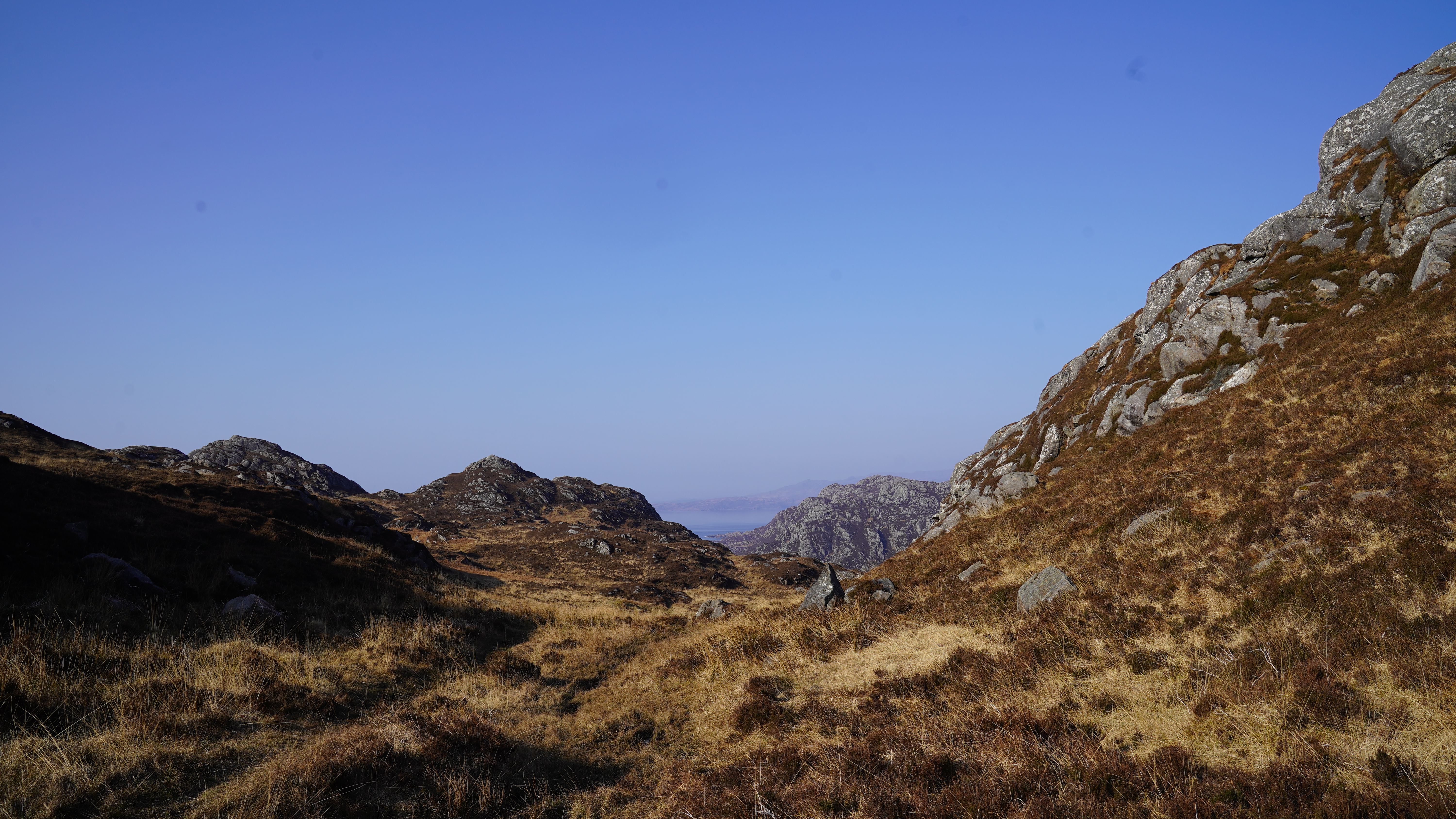 After about 30 minutes scrambling on the crags West of Baramore we made it back to the path. We decided to extend our walk and headed over the saddle, onto the "Bottom Path". Along with stunning views, we saw our first two deer silhouetted against the skyline on the saddle, then four more as we made our way back to Sawmill.