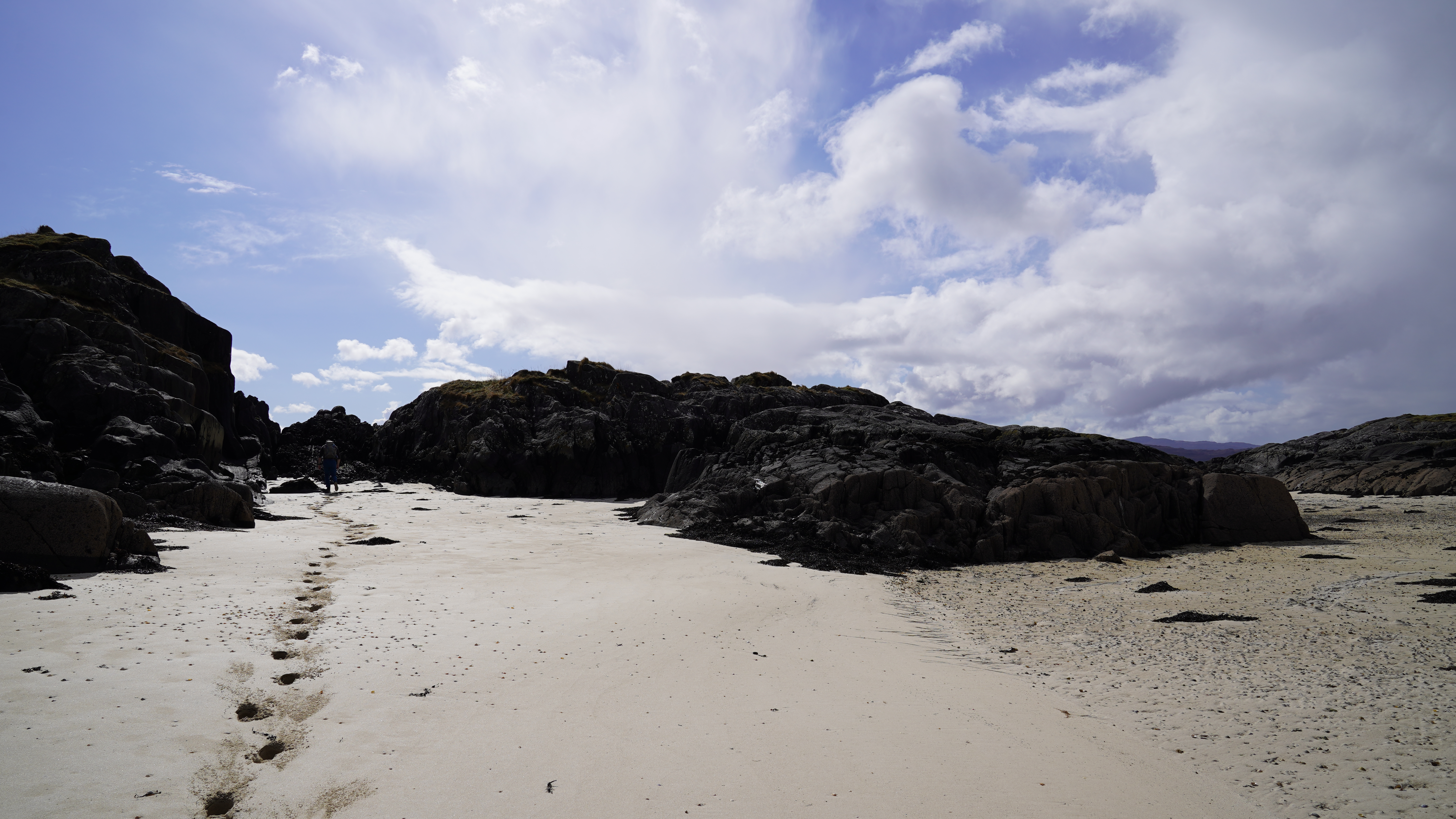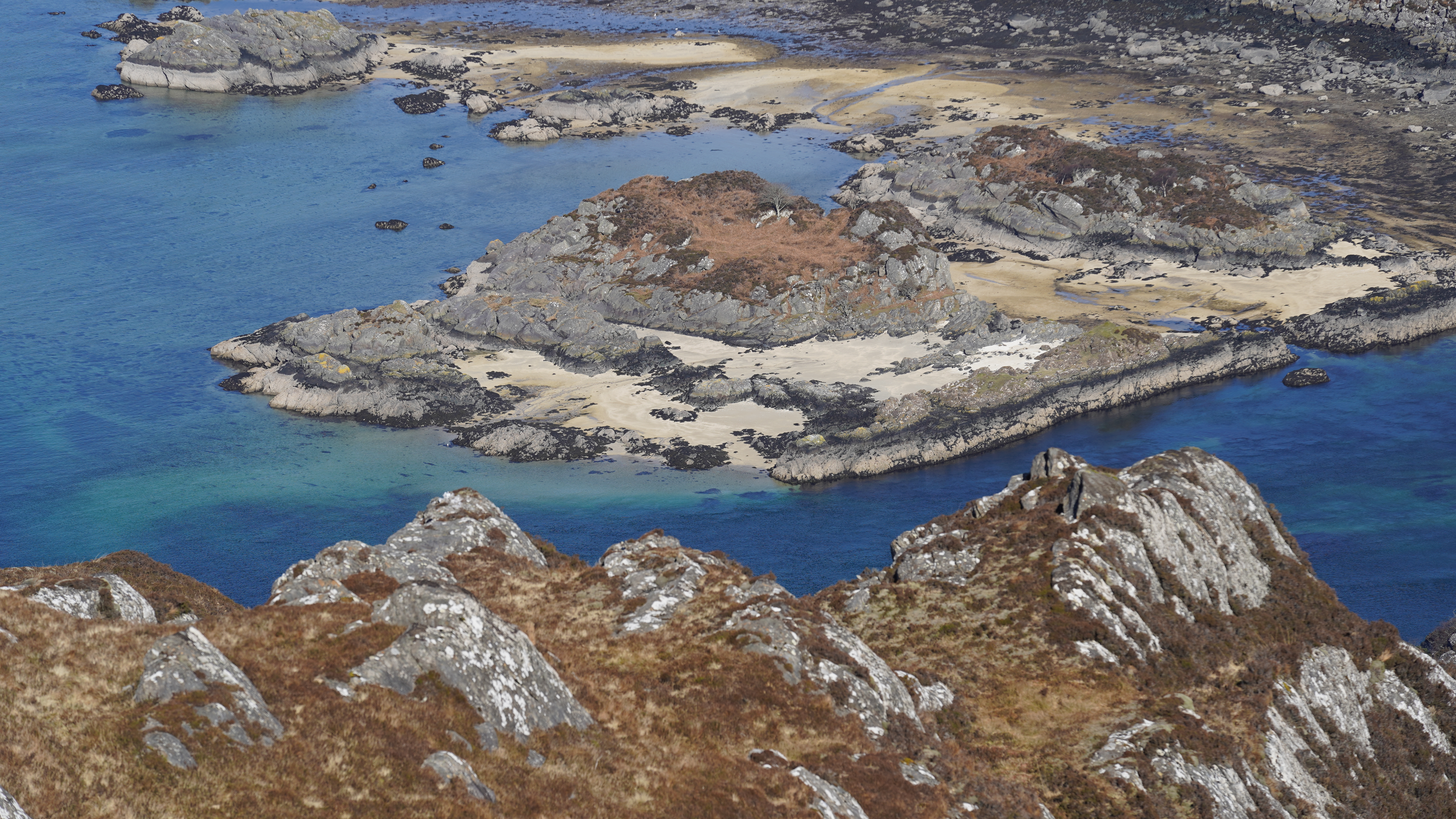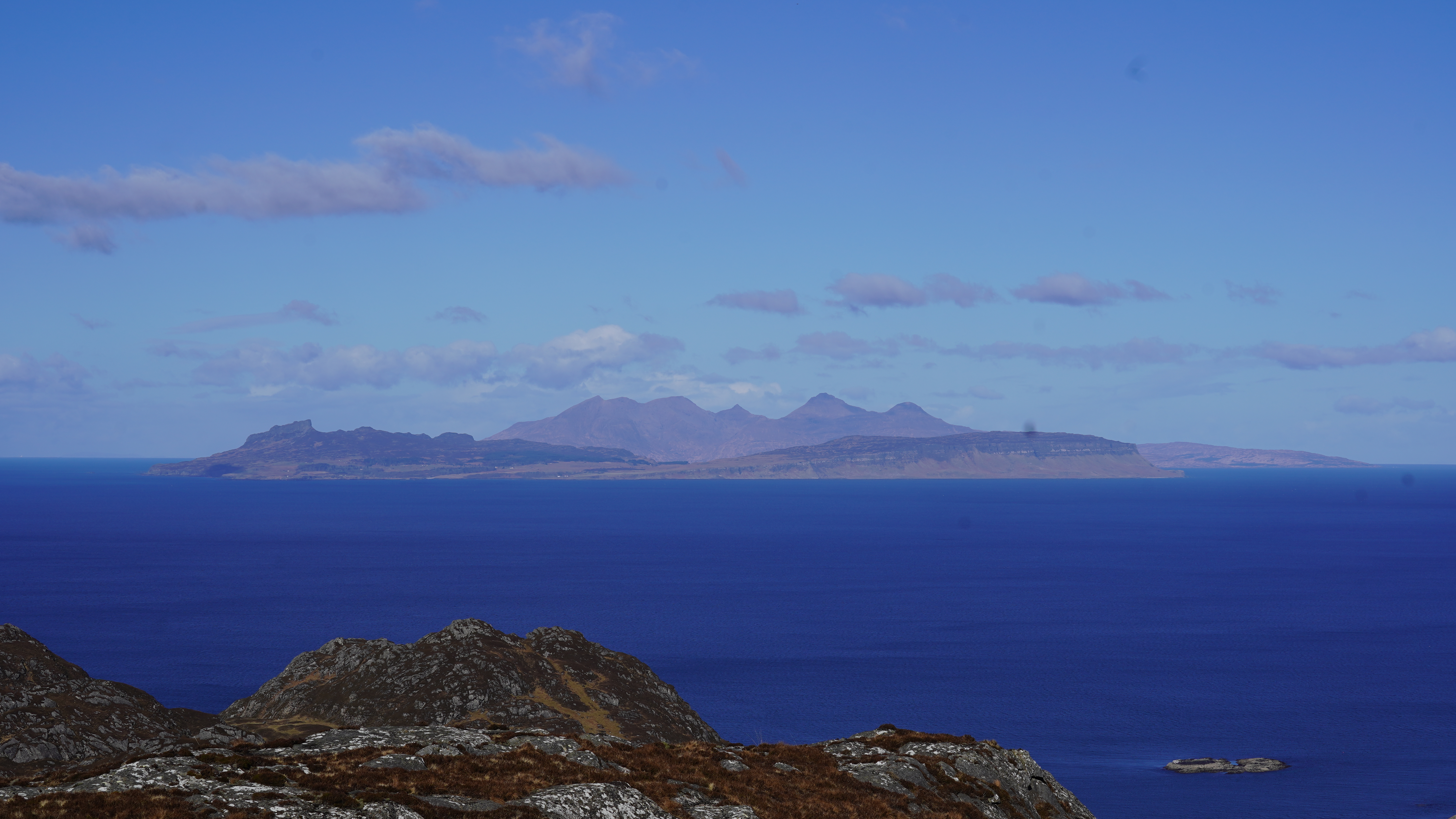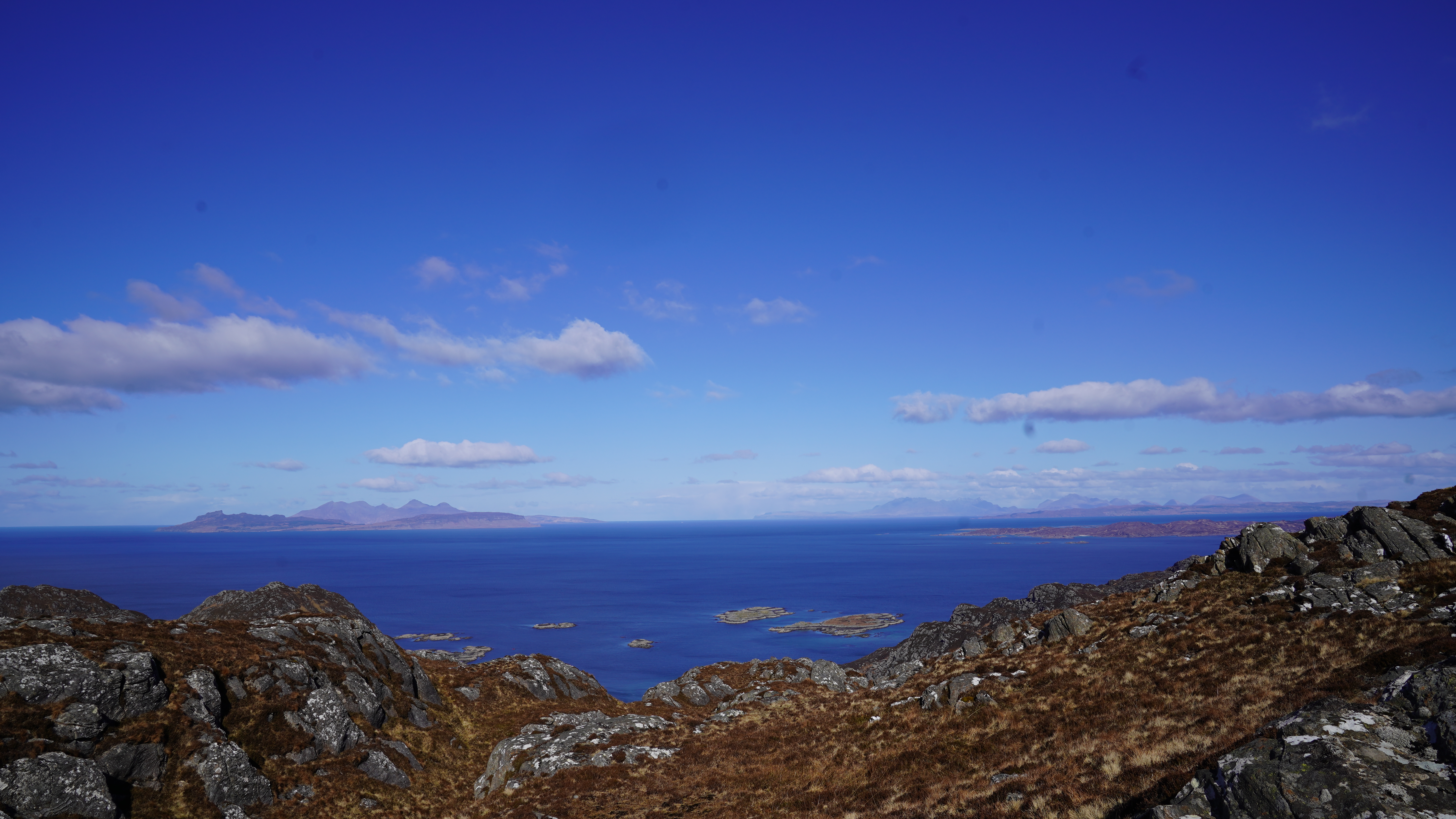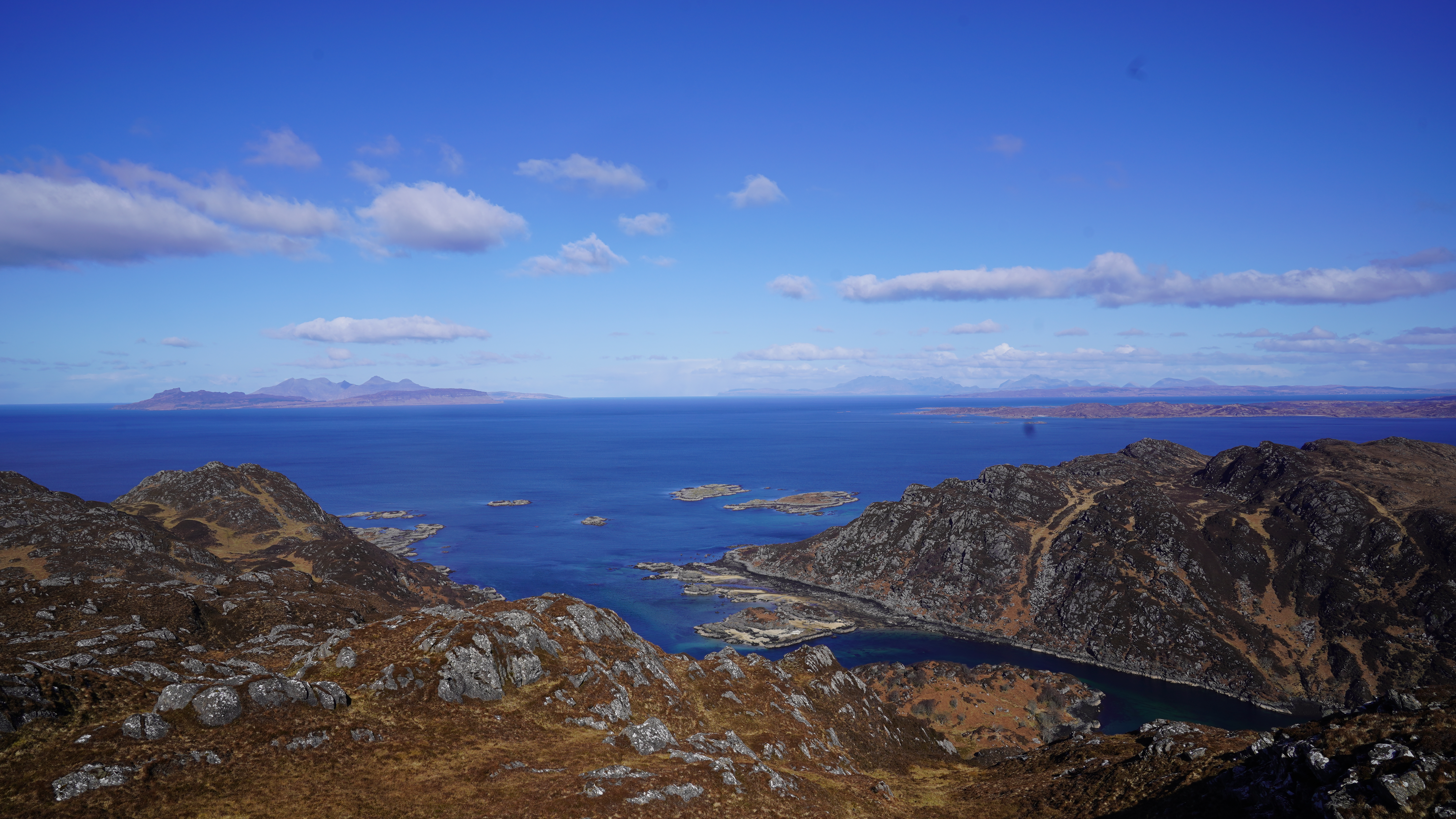 Perfect views over Eigg to Kinlock with Skye and the impressive Cullins further to the North. Inland, to the Nevis Range and what felt like all of the West of Scotland. By following the path on, a little past the summit you're treated to views down to Baramore and the sandy beach of Eilean na h'Oitire, where Shona said yes on Monday.