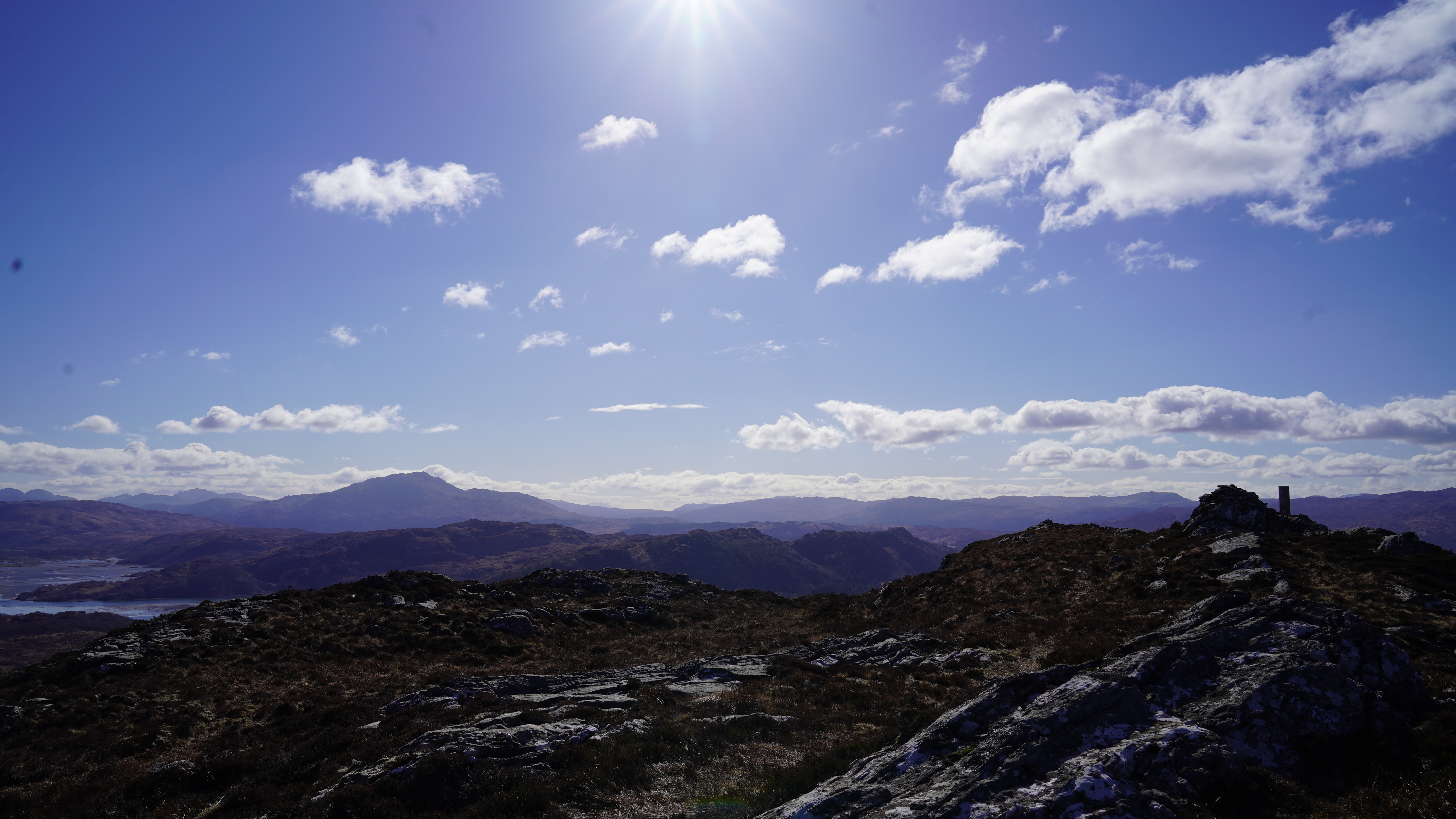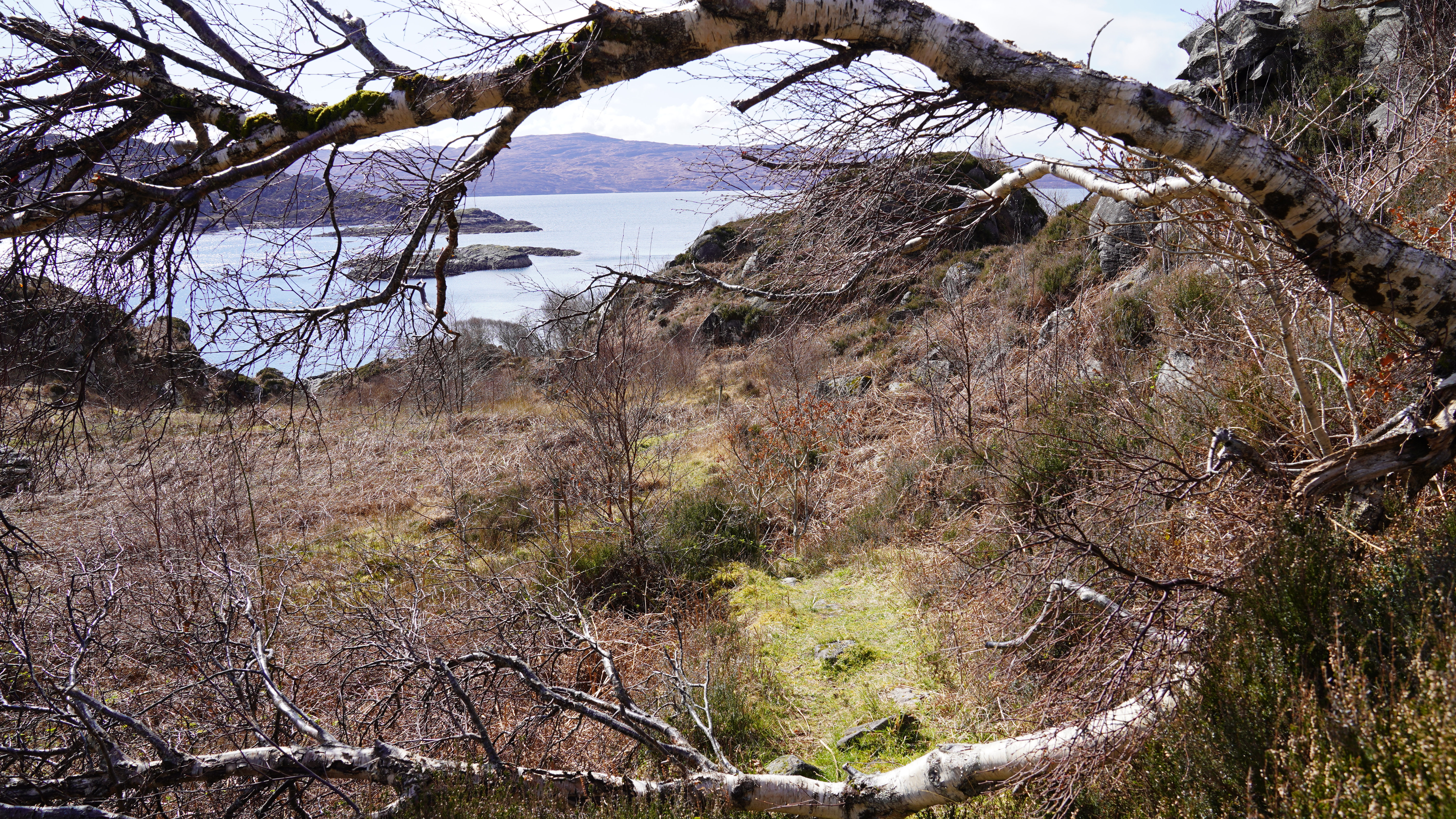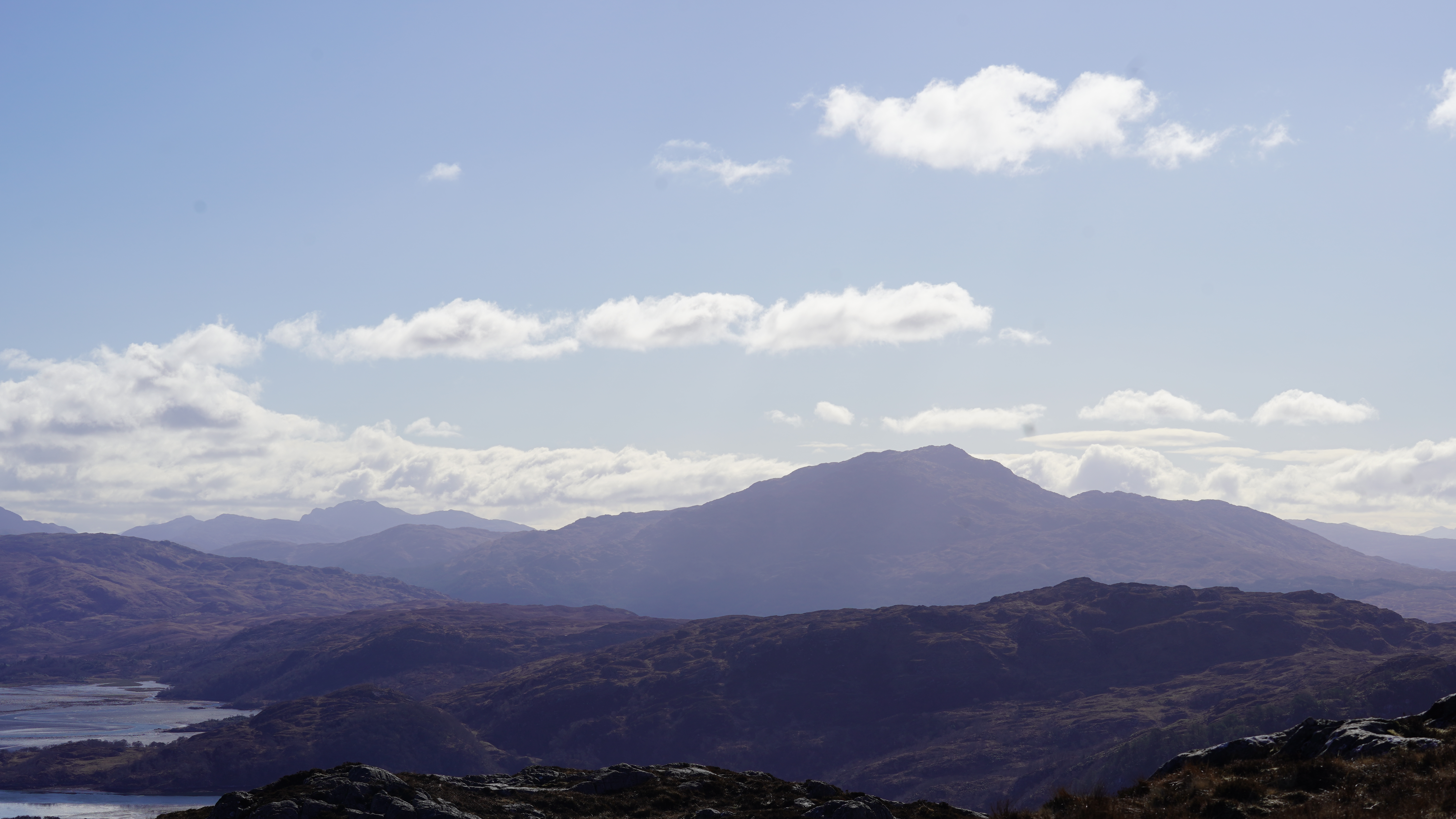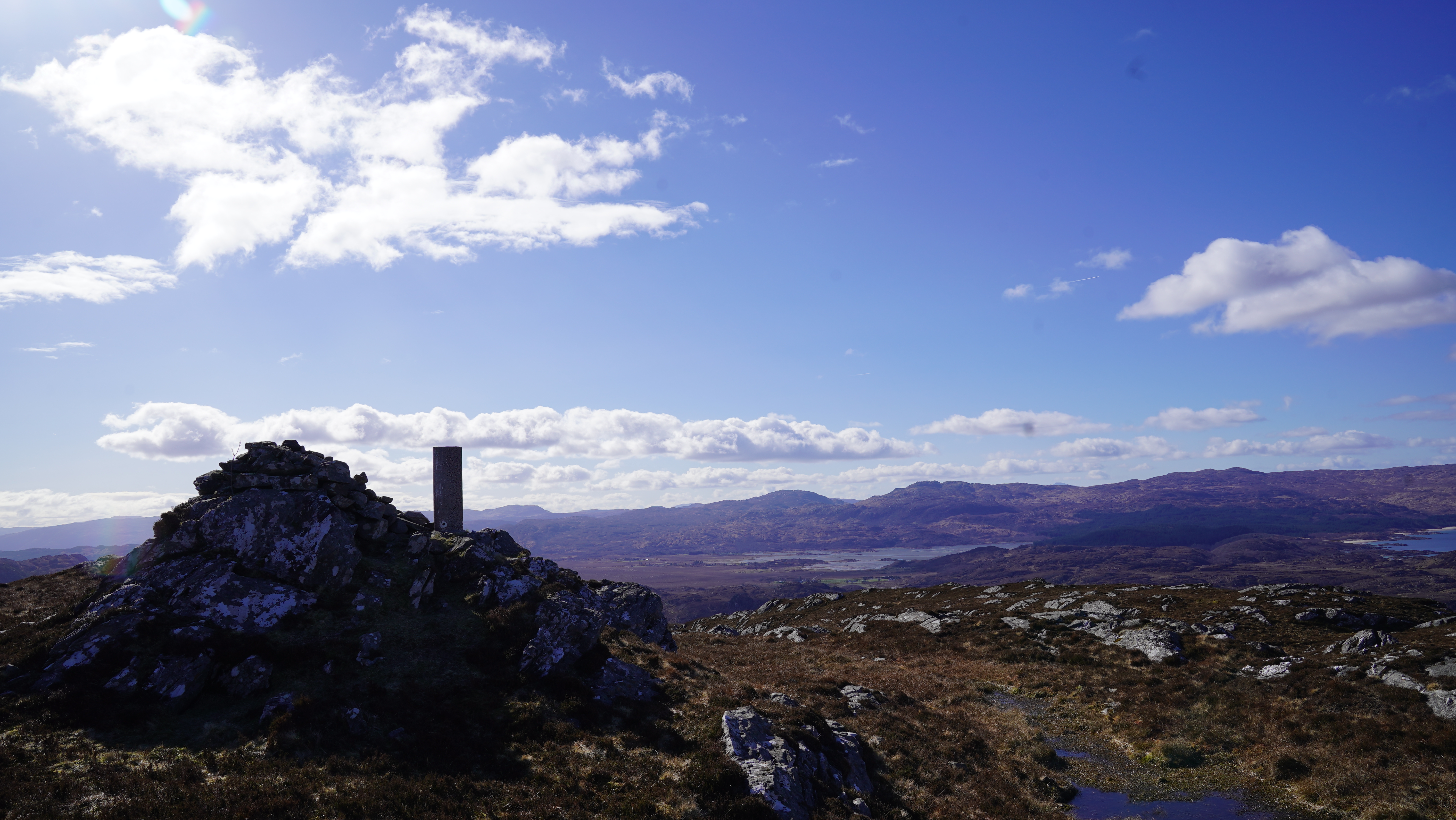 This morning we followed the main path up to the summit of Eilean Shona, Beinn a' Bhallidh. It was warm on the way up with the sun to our back and sheltered from the northerly wind.