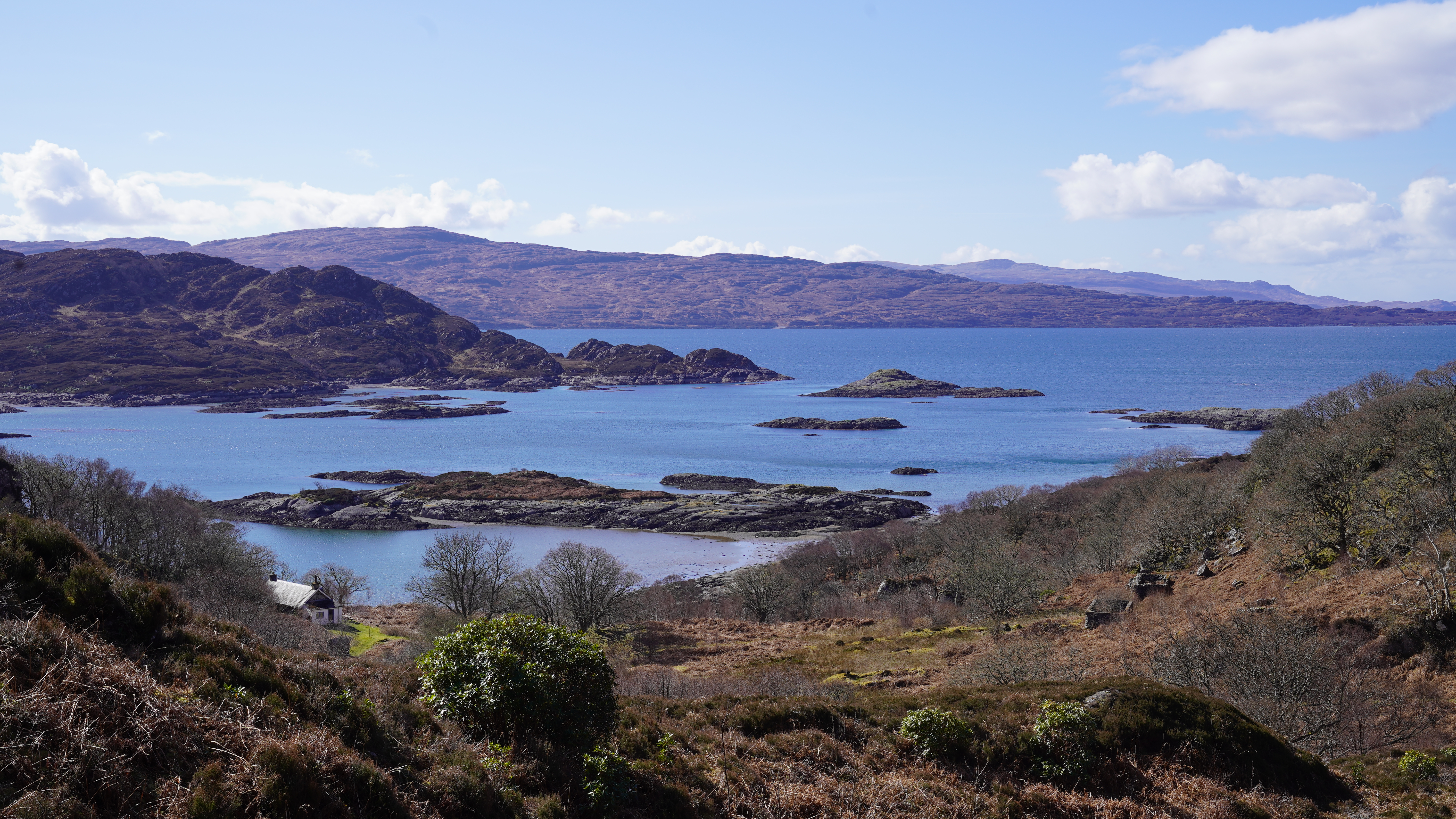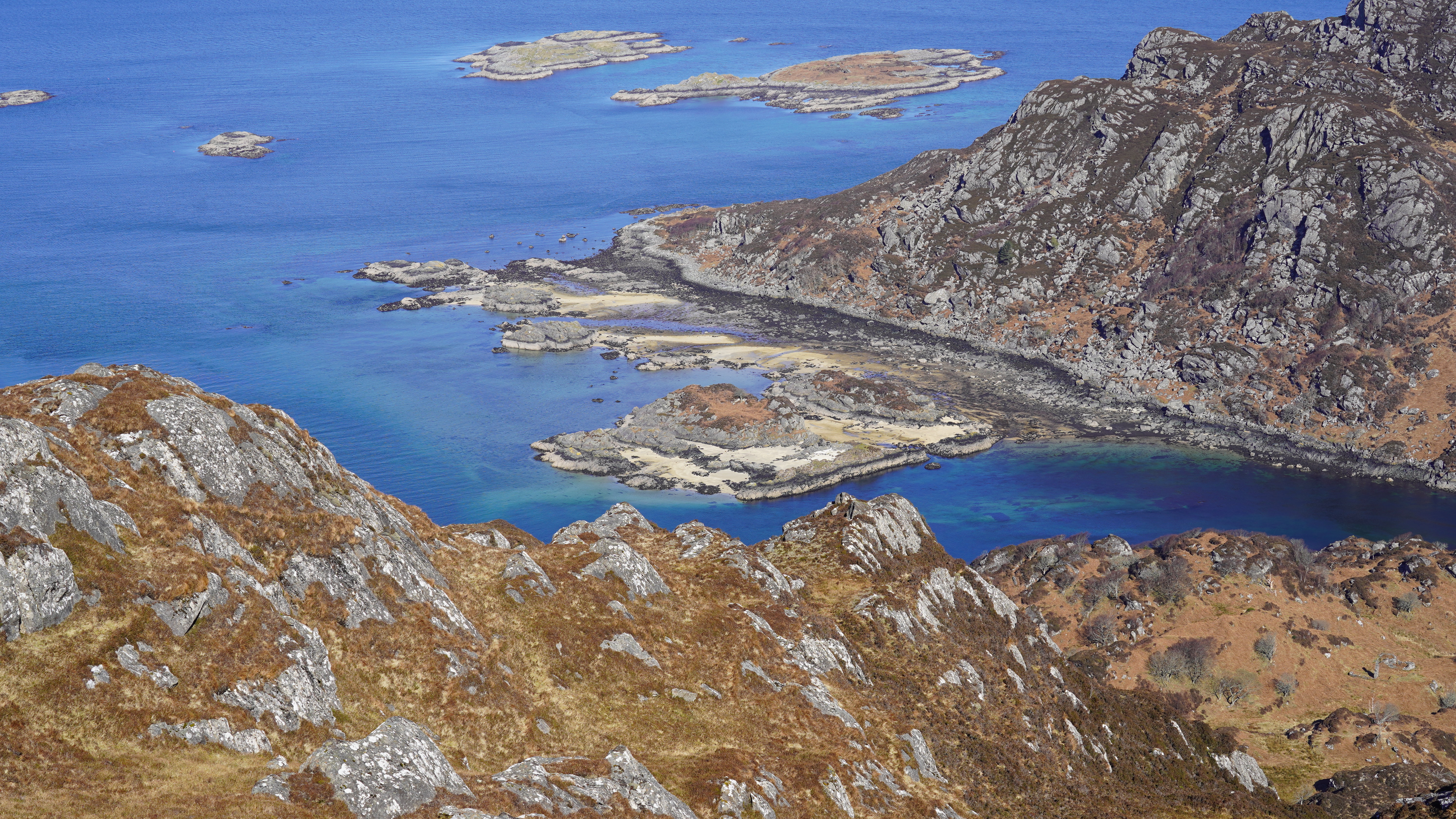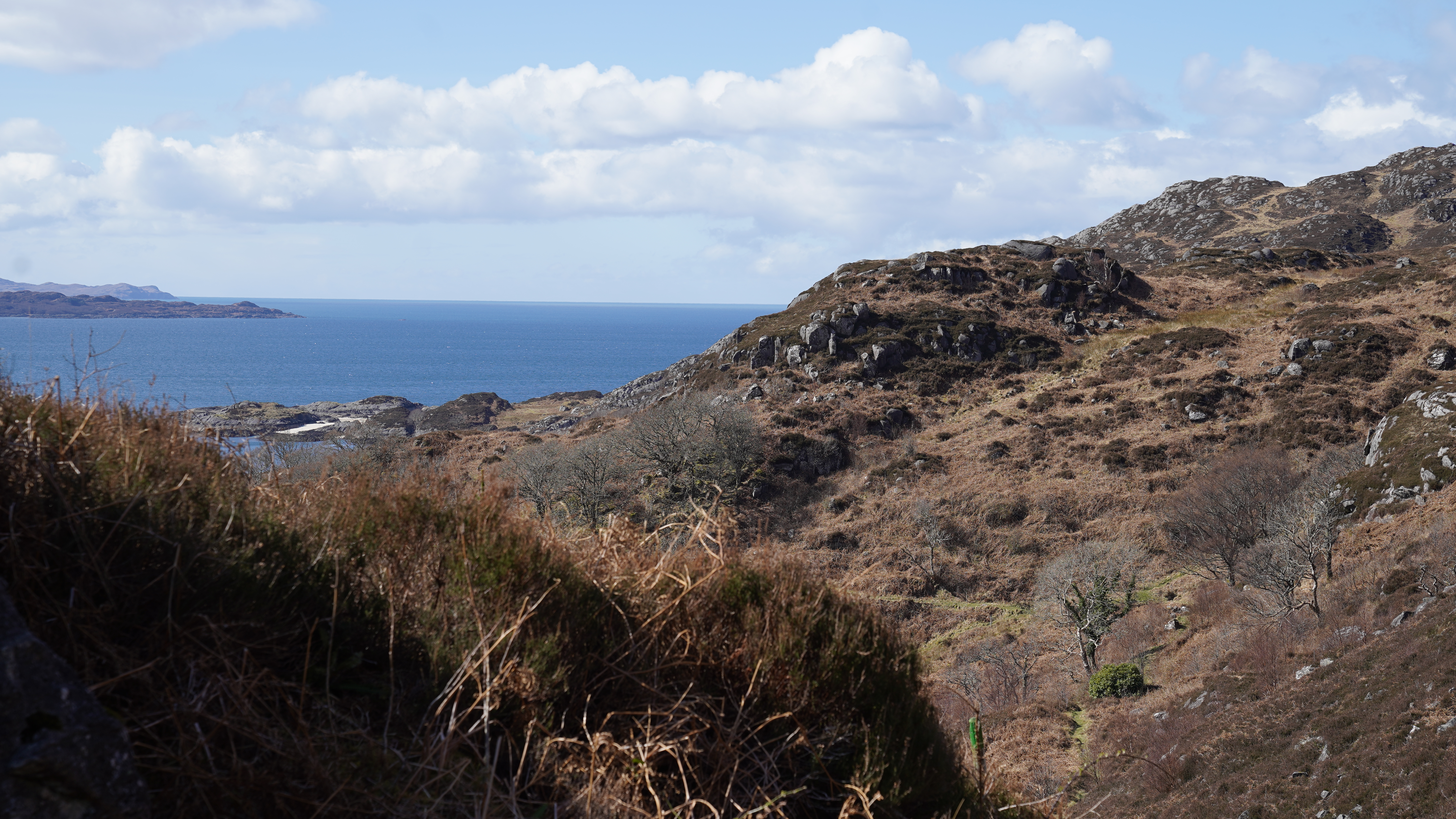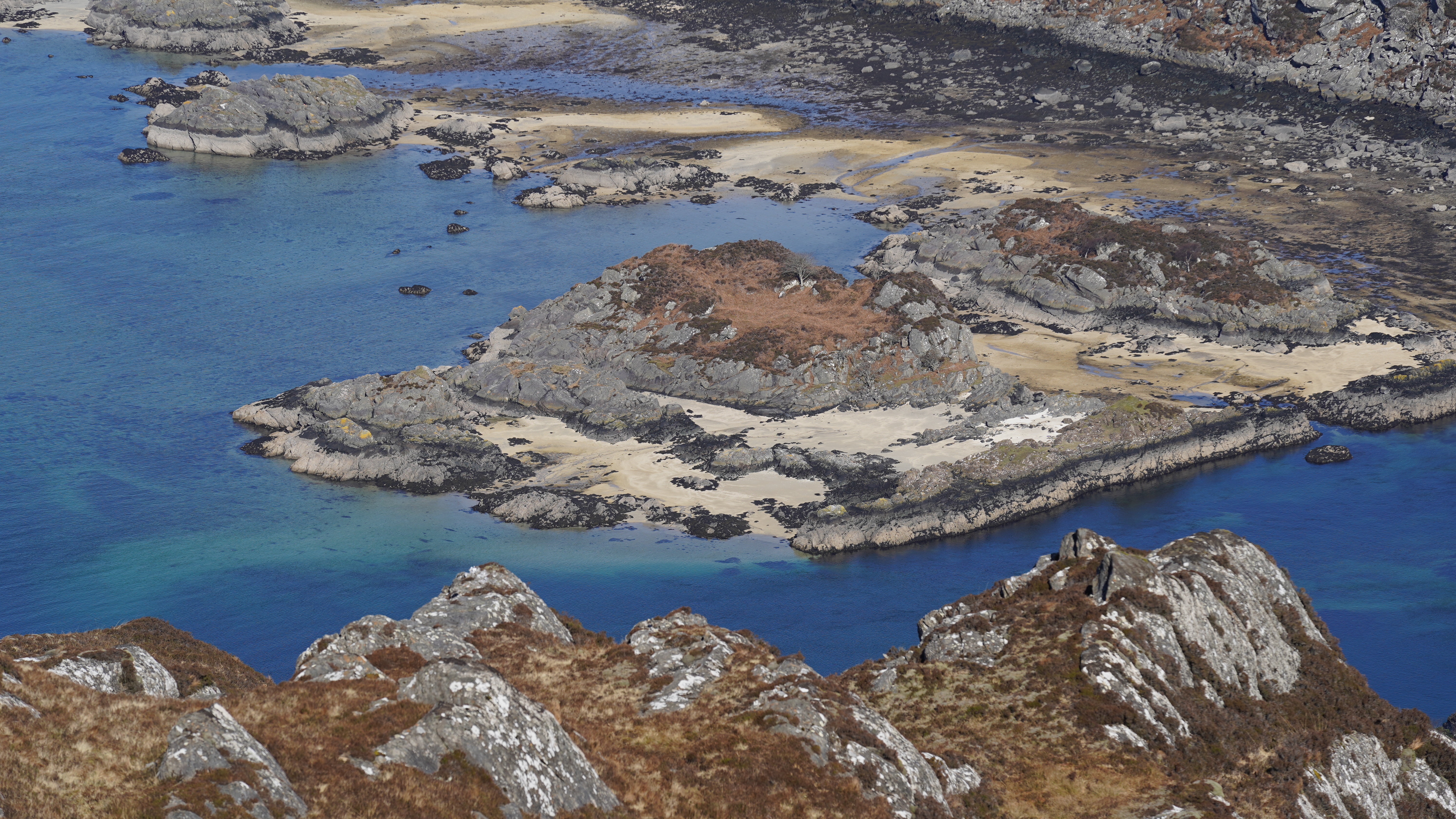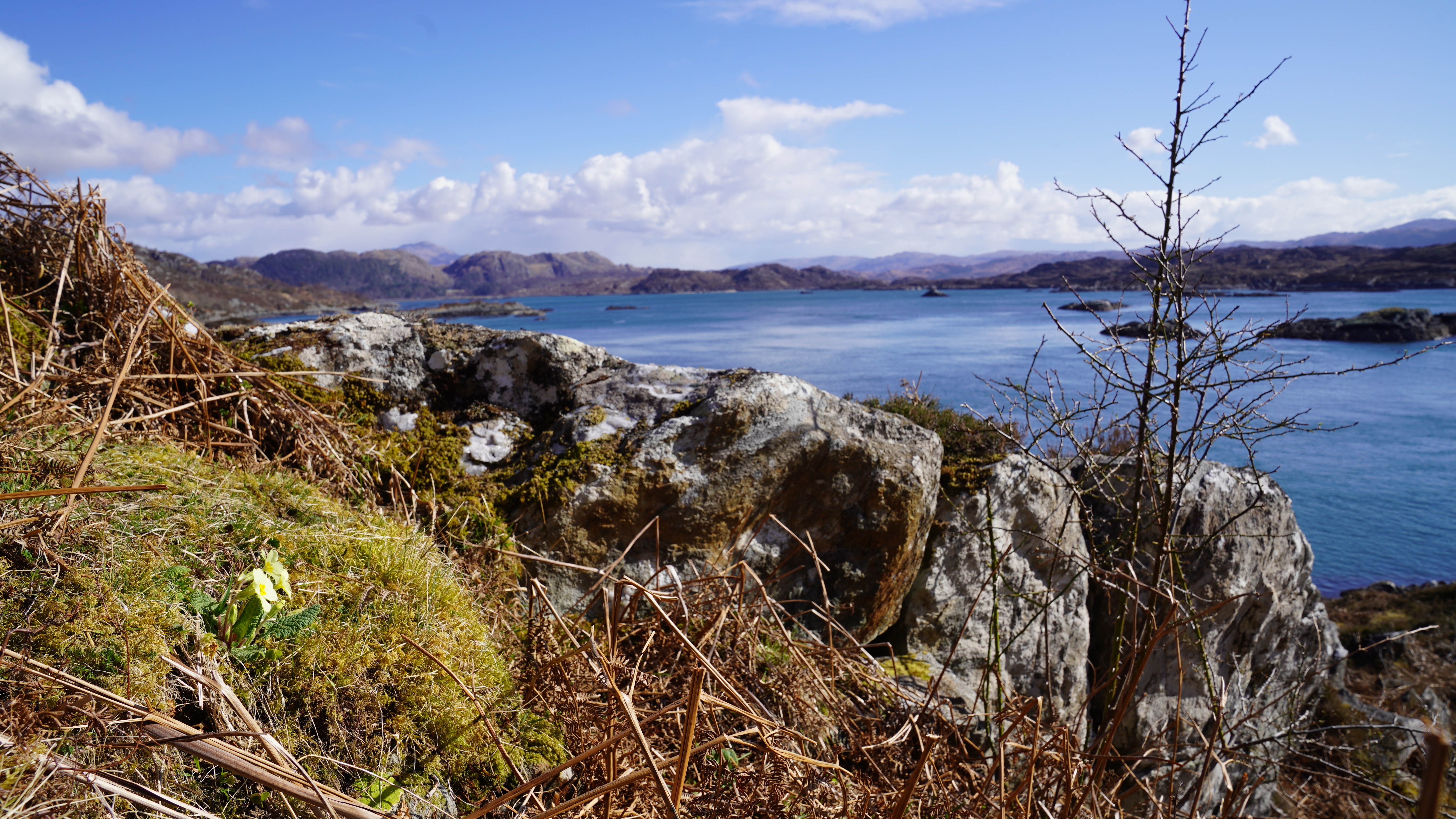 This morning we followed the main path up to the summit of Eilean Shona, Beinn a' Bhallidh. It was warm on the way up with the sun to our back and sheltered from the northerly wind.